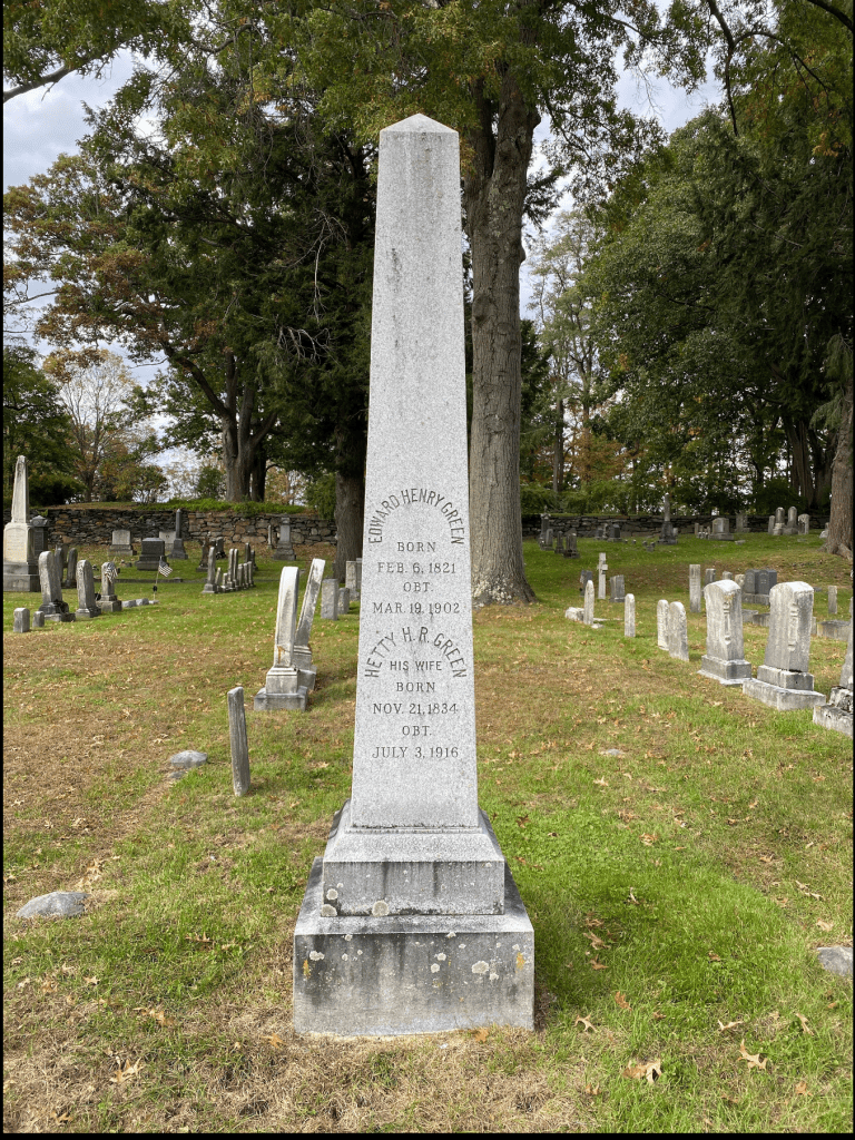Marriage for Hetty was a dilemma.  It was difficult to find a husband who wanted to marry her for love — not her money. And, she wanted a man that had business knowledge equal to her.  At age 33, she seemed to have found that man in millionaire Edward Henry Green of Bellows Falls, Vermont. After the marriage she did live in Bellows Falls and London as well for a few years. The life in London was intended to shed her disappointment following the legal battle over her Aunt’s will.