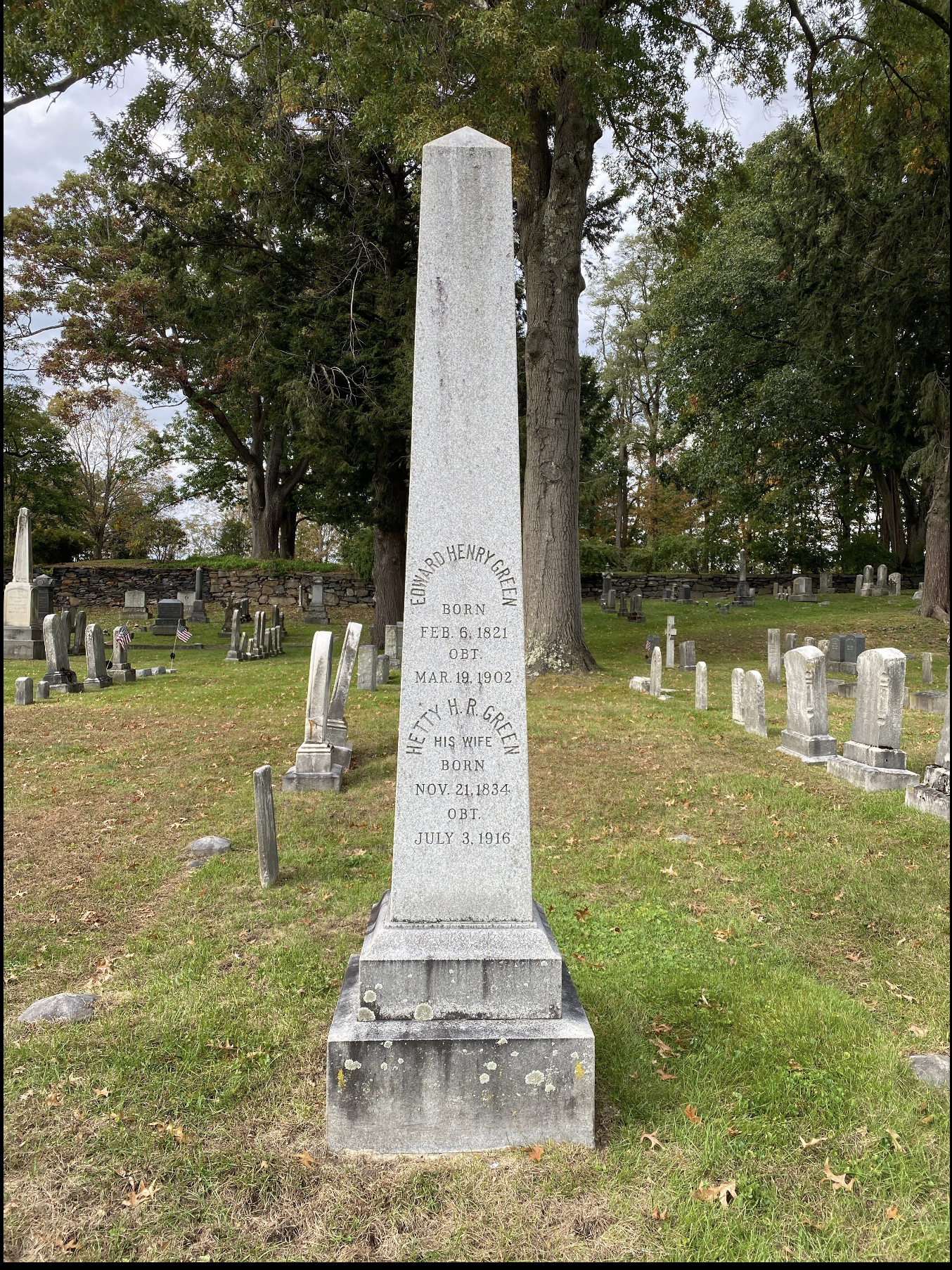 Hetty’s will stated she wanted to be buried in the same plot as her husband, Edward Green. That decision, of course, was talked about as being another act of frugality.