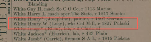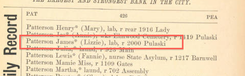 Next, in his ante-mortem statement, James Patterson mentioned that Annie Laurie lives in Mr. White’s yard, on Pulaski Street. Mr. White is also in the directory.