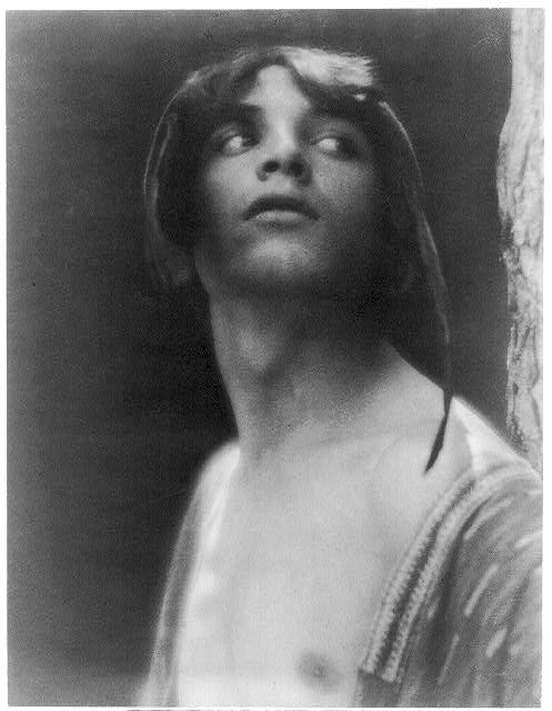 The model was Nicholas Giancola. The image was captured by photographer F. Holland Day, and he called the portrait Youth in winged hat and robe.