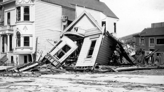 And it was over by 5:14 a.m. But several separate forces – the damage from the earthquake, the aftershocks, and the gas lines that provided energy to the city – collided with one another and a fire ignited. The city burned for three days.