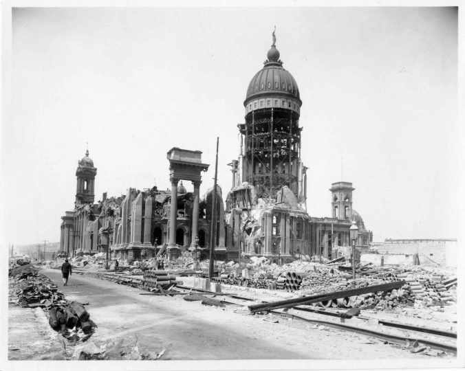 But San Francisco was destined to be more than a sepia-toned memory. The people refused to let the city lay in ruins, or to scatter and rebuild elsewhere. San Francisco defiantly built itself back up, grander and more flamboyant than before. The fingerprints of the old earthquake are faded but visible,  a reminder of San Francisco’s great courage and resilience.