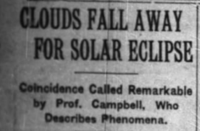 The Arizona Daily Star was distinctly smug in an article entitled “SAVANTS FOILED AT DENVER”. Scientists had flocked to Denver, where the sun was to be completely obscured. The Daily Star reported gleefully that due to heavy cloud cover, astronomers “found their elaborate preparations went for naught.”