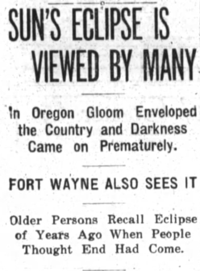 The Leavenworth Times reported that a “peculiar yellow tinge” appeared across the landscape when the eclipse started. They advised readers to keep their smoked glass used for eclipse viewing, since they could use it again in 1936.
