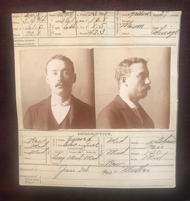 Seymour’s mugshot in Pittsburg – front and reverse (24 January 1900)