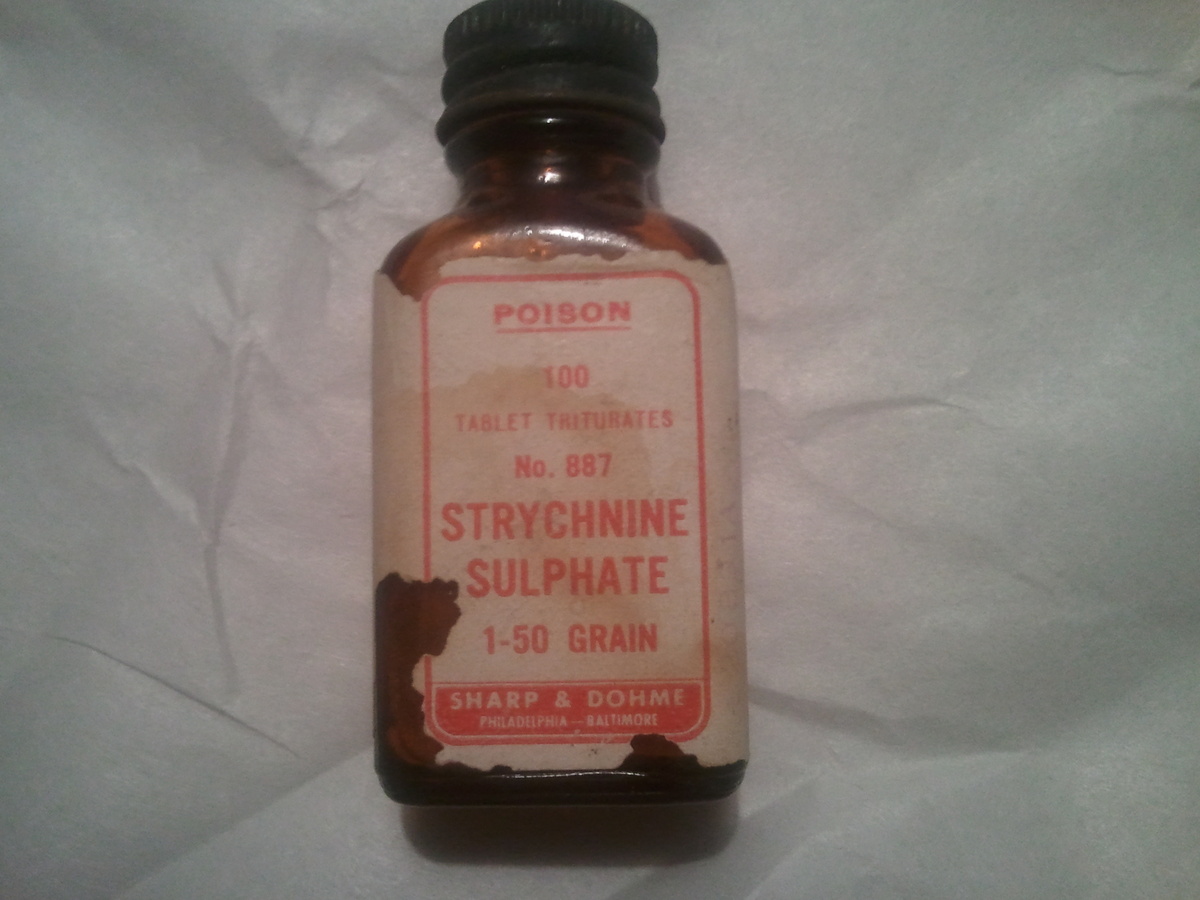 A restless Steven Rablen had been expecting some kind of misfortune ever since the mail-order divorcee showed up. He insisted – demanded – that Sheriff Dambacher return to the schoolhouse to search for clues. The harried sheriff finally agreed to return to the school to look around. He searched for an hour and found nothing. He turned toward the door and stopped, his hand frozen in the act of placing his hat on his head. His eyes were fixed on the steps – a broken step, in particular. Instinctively, he crouched beside it and reached into the hole. A moment later, his hand reappeared clutching a small bottle. The sheriff squinted at it. STRYCHNINE was written in small letters. He looked at the base of the bottle. “Bigelow,” he said aloud.