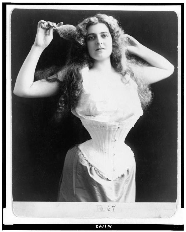 Woman wearing corset, brushing her hair, 1899. I’ve read that corsets caused all kinds of health issues for women. In attempting to achieve an hour-glass figure, they frequently resorted to crushing their internal organs with corsets. Of all the photos, this is the only one that made me cringe. Can you imagine how uncomfortable she must have been?