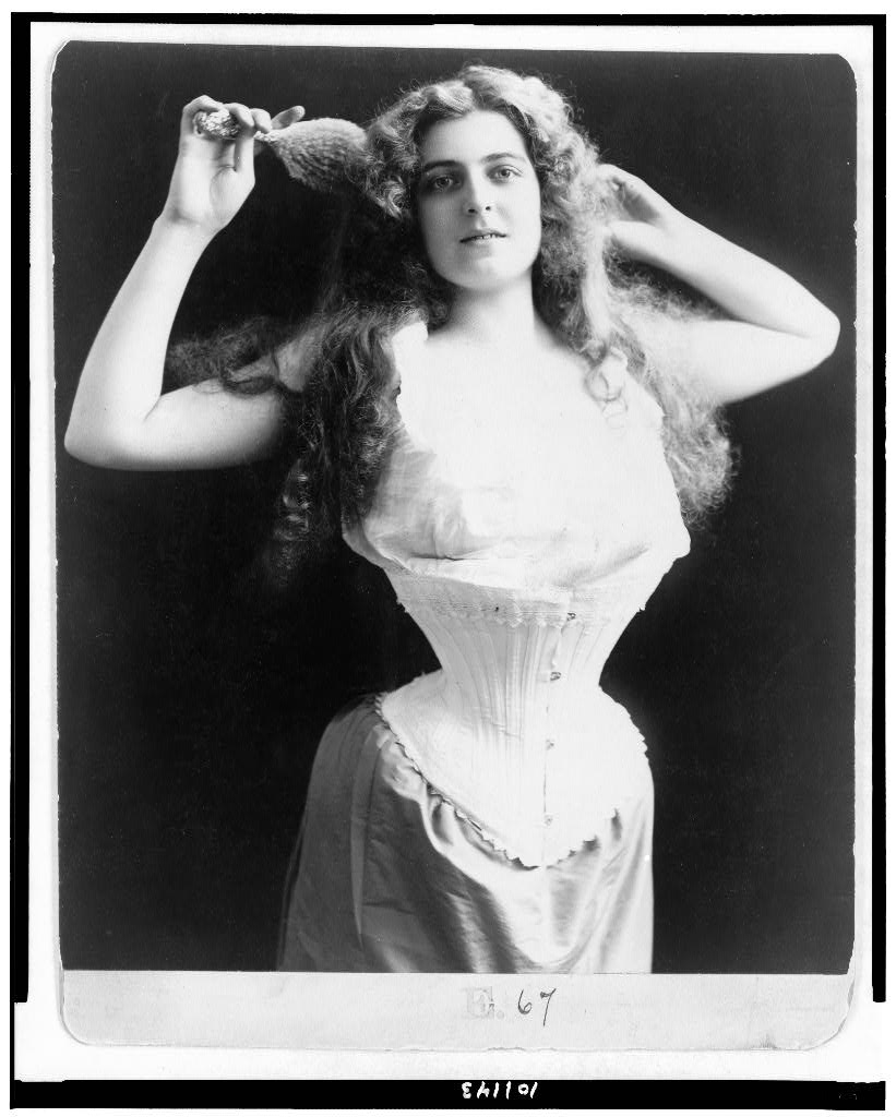 Woman wearing corset, brushing her hair, 1899. I’ve read that corsets caused all kinds of health issues for women. In attempting to achieve an hour-glass figure, they frequently resorted to crushing their internal organs with corsets. Of all the photos, this is the only one that made me cringe. Can you imagine how uncomfortable she must have been?