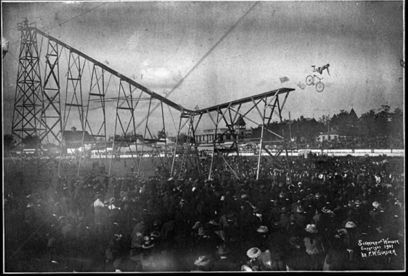 Schreyer the Wonder performing bicycle stunts (LOC reference number: LC-USZ62-15891 b&w film copy neg.)