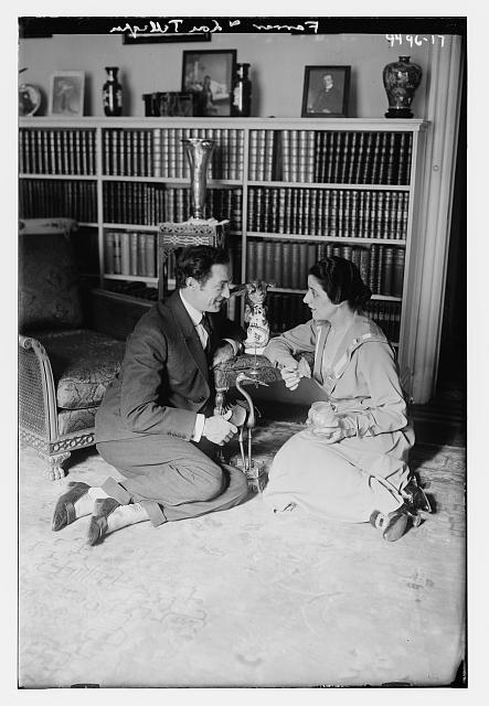 1916. Lou Tellegen and Geraldine Ferrar at home LOC. I love the framed publicity photograph of Lou Tellegen displayed conspicuously in their living room.
