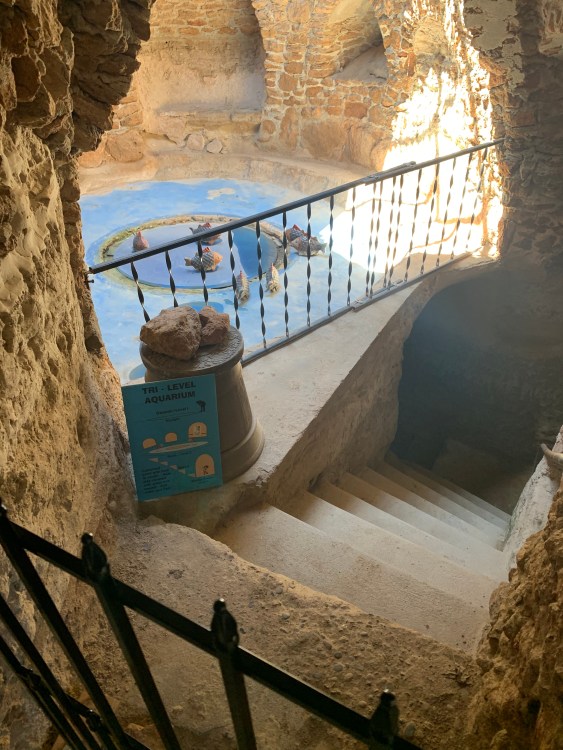 Baldassare’s aquarium (now empty) and steps leading to another level of his underground world