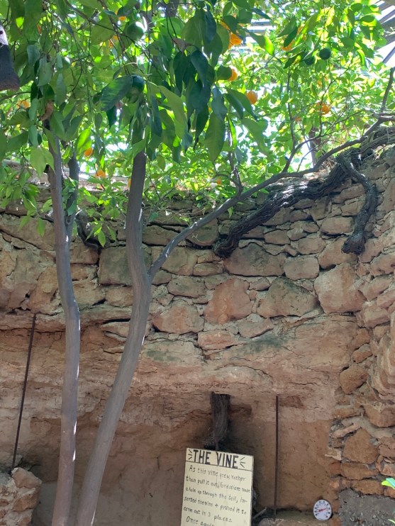 Soon, his home had everything he needed: a stove, an icebox, and a bathtub. Later he added electricity. He had another idea he was eager to try grafting different types of trees, so that one tree would eventually bear multiple fruits. And he did: he successfully grafted multiple trees to bear oranges, lemons, and grapefruits. One tree becoming his masterpiece, bearing 7 different fruits. His open-air courtyards were partially shaded by grapevines, and Baldassare made his own wine.
