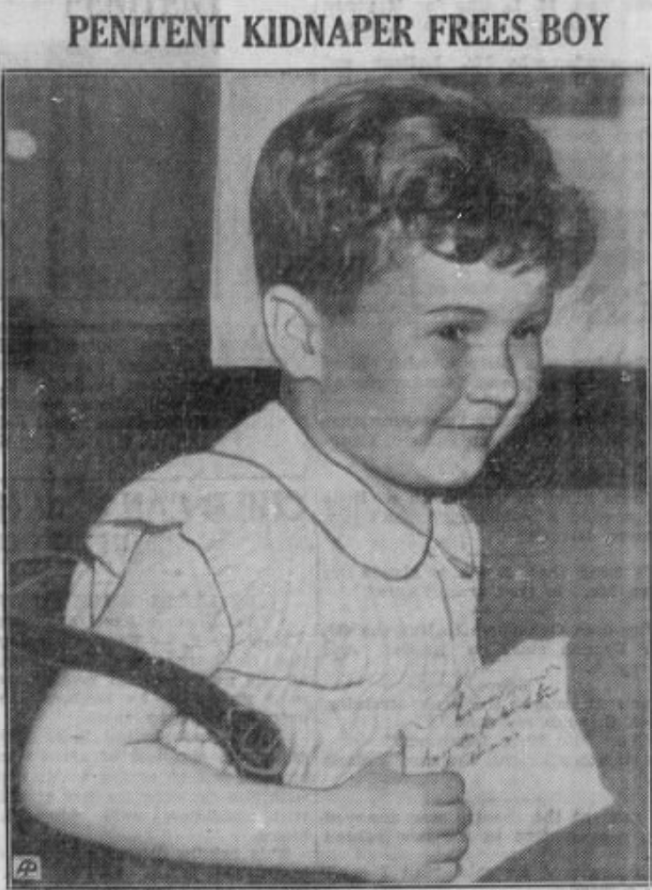“I was going to hold this boy for ransom, but I decided to go straight. Please get him to his parents in Berkeley. I am in great need, but would rather starve than make his parents suffer. If they want to contact me, let them address me as Chuck in Wednesday’s Oakland Tribune.”