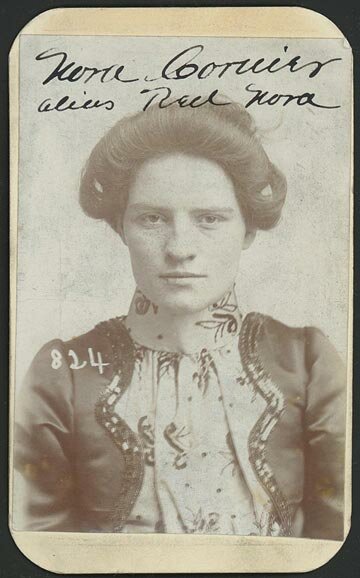 Nora Courier, better known as “Red Nora”, was arrested in March 1901 for horse theft. Back in the day, a horse thief was the most lowdown thing a person could. be. This perp was 22 and stood at 5’3. Red Nora just looks like trouble to me.
