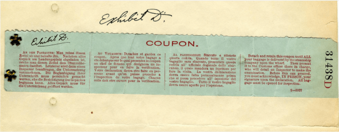 Baggage Claim Coupon from the Titanic
