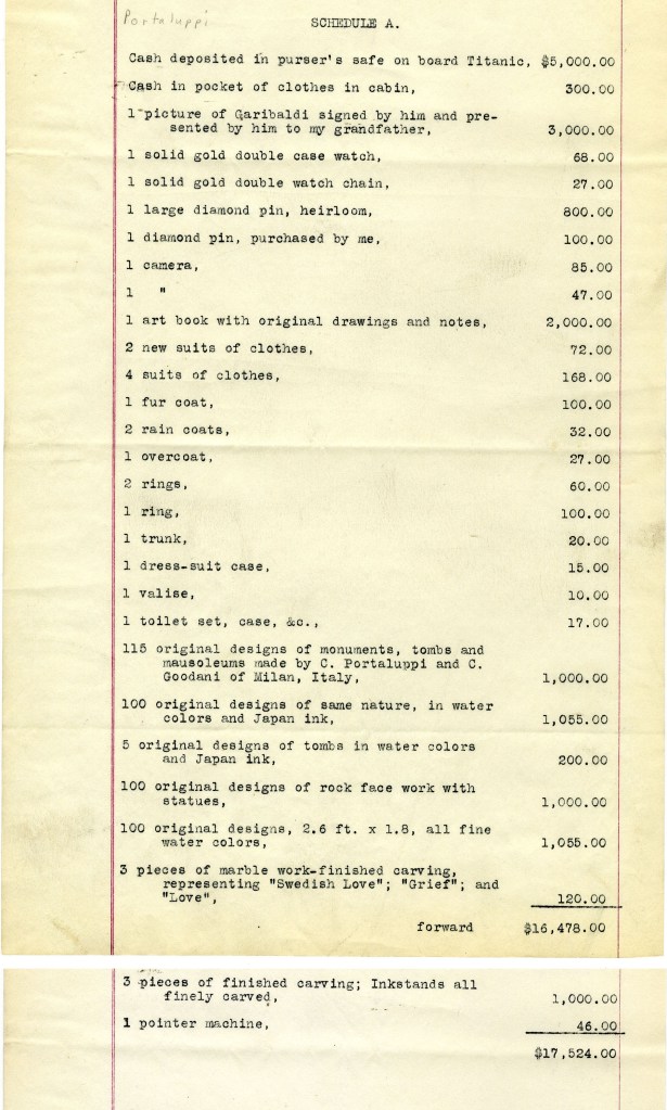 Claim of Emilio Portaluppi, per the National Archives