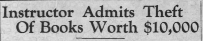 Marsh attempted to excuse his conduct, by declaring he had always wanted books but he could never afford them. “I have been oppressed by poverty ever since I worked my way through Harvard University. They have found some books which have been missing since 1925.”