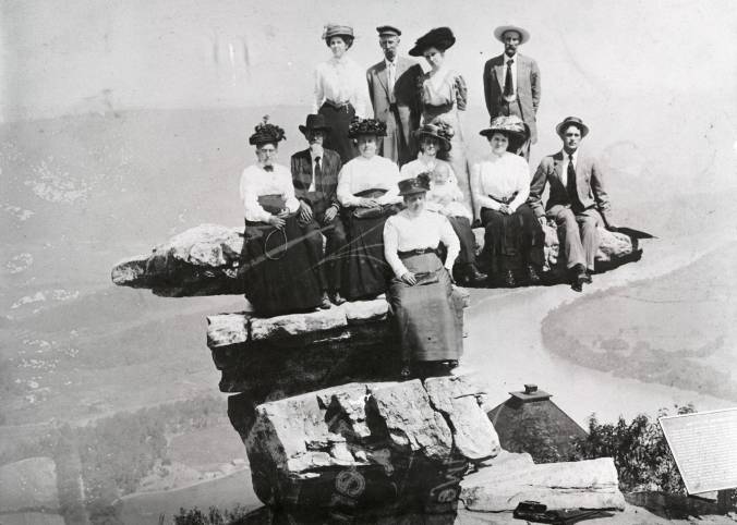 I came across this wonderful picture in the Tennessee Library and Archives. This group of Victorians perched on Umbrella Rock at Lookout Mountain, circa 1900. Far beneath them, you can see the Tennessee River. One of those weird and wonderful sights!