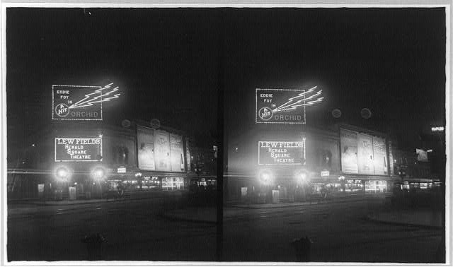 Broadway and Herald Square Theatre at night, New York City 1907 (LOC)