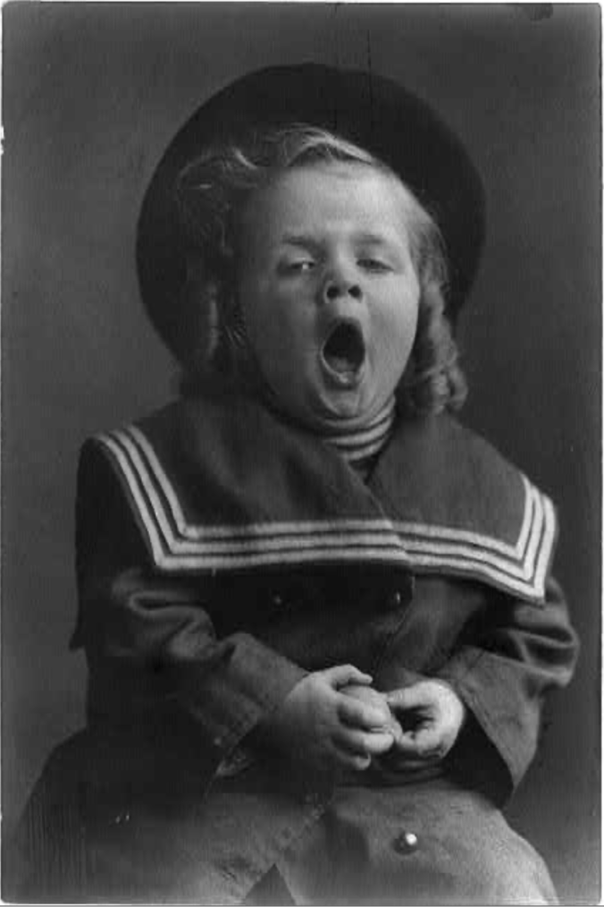Small boy with long hair wearing hat and sailor coat yawning (1909) LOC