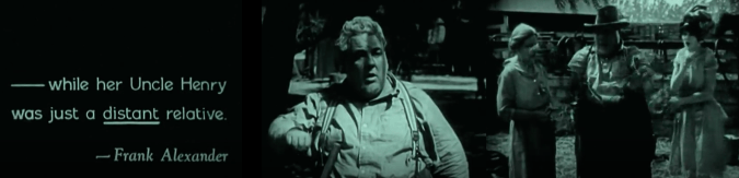 Cut to Uncle Henry, who we soon learn, is subject to continual character assassination. Who knows why Dorothy is targeting him, but I can tell you Uncle Henry is the only normal person in this film.