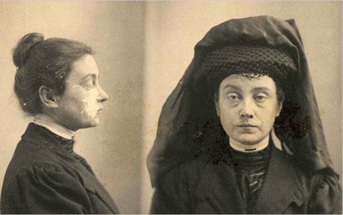 Yeah, you’re rarely having your best day when you’re being arrested! It’s kind of funny, the reason I like mugshots is because you get a look right down to a person’s soul. You can see what people are made of. And you’re right, they look sad, tired, and guilty. But some of them look like they could’ve been pretty all right people. Maggie Moore seems like she could’ve been nice. If you can put aside the hat, Mary Snowdon seems like she’d be okay. But I wouldn’t trust Mamie Polosky (the dishonest servant) and Anna Hill (Ms. Impersonating an Officer) any further than I could throw them. Emma Goldman looks and was a hardbitten character. Lillian Boland looks steely. Butter wouldn’t melt in her mouth!