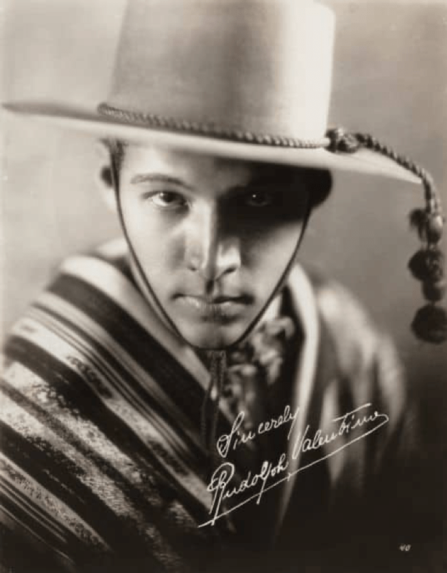 He was born Rodolfo Alfonso Raffaello Pierre Filiberto Guglielmi di Valentina d’Antonguolla (“Imagine that name in neon lights!” he once said) in 1895 in Castellaneta, Italy. He came to the United States at the grand old age of 18, and first got work as a gardener, then a dishwasher, a waiter, a vaudeville dancer, and a gigolo. He won a leading role in The Four Horsemen of the Apocalypse in 1921, and skyrocketed to fame, filming The Sheik later the same year.