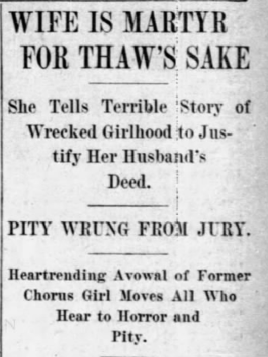 Quick summary: Harry Thaw was put on trial for murdering architect Stanford White in 1906 over his previous relations with Thaw’s wife, Evelyn Nesbit. White had groomed Nesbit when she was a young model of fifteen years old—and he was 48.