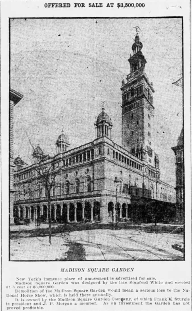 Madison Square Garden was up for sale in 1911