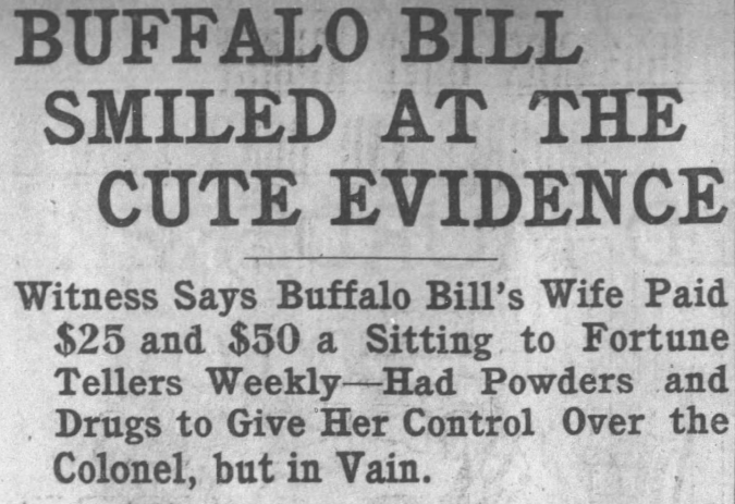 Mrs. Cody carried a powder with her, presumably given to her by these expensive mediums, that was supposed to help her “get power” over Cody.
