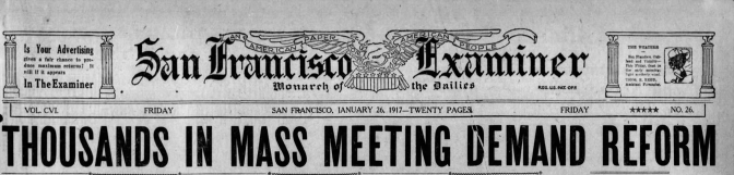 “There was no hysteria in the great meeting…It was the calm, steady voice of a people that has been aroused to a sense of danger to their city and who insist that steps be taken to suppress the causes of the danger,” the Examiner continued. “There was no sign of politics in the gathering of the citizens. There was no heated attack or wild appeals to passion…It was the voice of the people, awakened and alert, a voice that must be heeded. And the people who made up that meeting are of a temper that will see to it that they will get what they demand.”