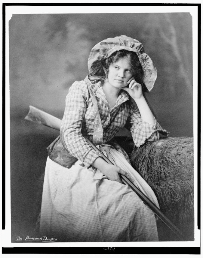 The moonshiner’s daughter. Young woman, three-quarter length portrait, facing front, with left hand under her jaw, holding rifle. Created / Published c1901 (LOC)