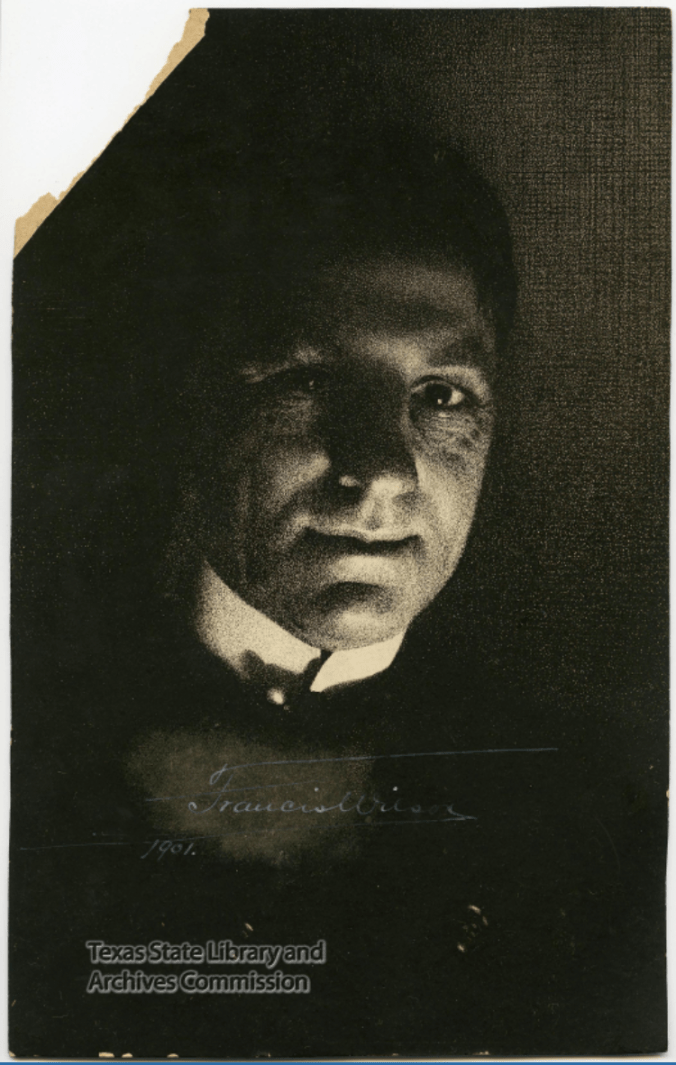 The first picture is a ghostly image and an excellent character study of Mr. Francis Wilson. His photo jolted me: I could imagine visiting a grand Texas mansion around 1890 or so and bumping into him in a dim hallway…