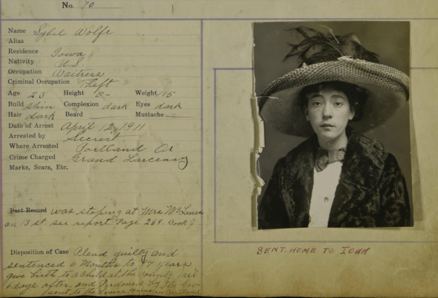 Sybel Wolfe, 23, was arrested for grand larceny on April 12, 1911. According to police records, she gave birth in the Clark County jail six days after her sentencing. Wolfe was later pardoned by the Washington governor for her crime and sent home to Iowa.