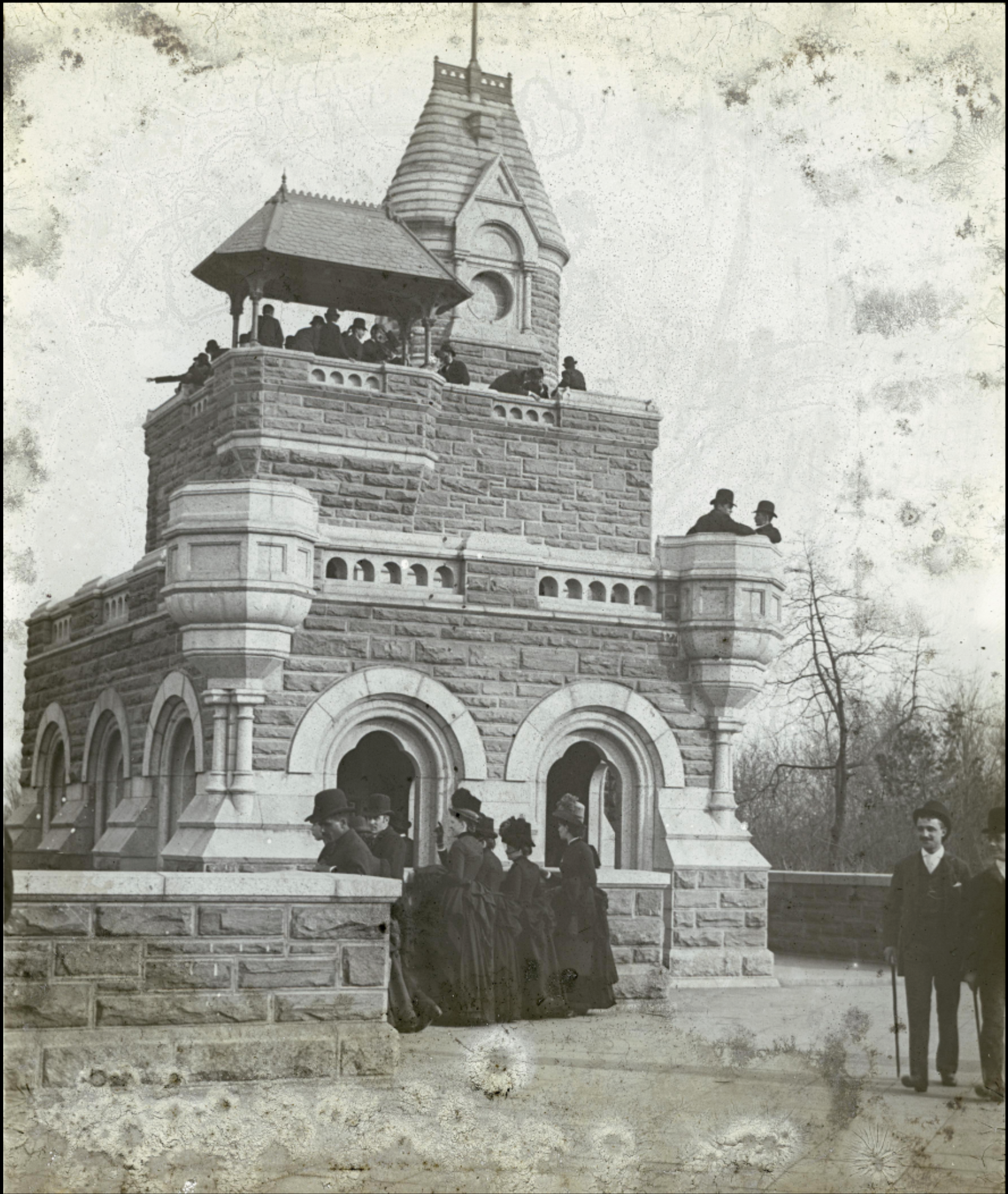 I found this astonishingly detailed photo of Belvedere Castle in Central Park, circa 1890, in the New York City Municipal Archives. It’s incredible that someone was able to capture this clear of a shot 130 years ago. There’s a lot going on in this photo!