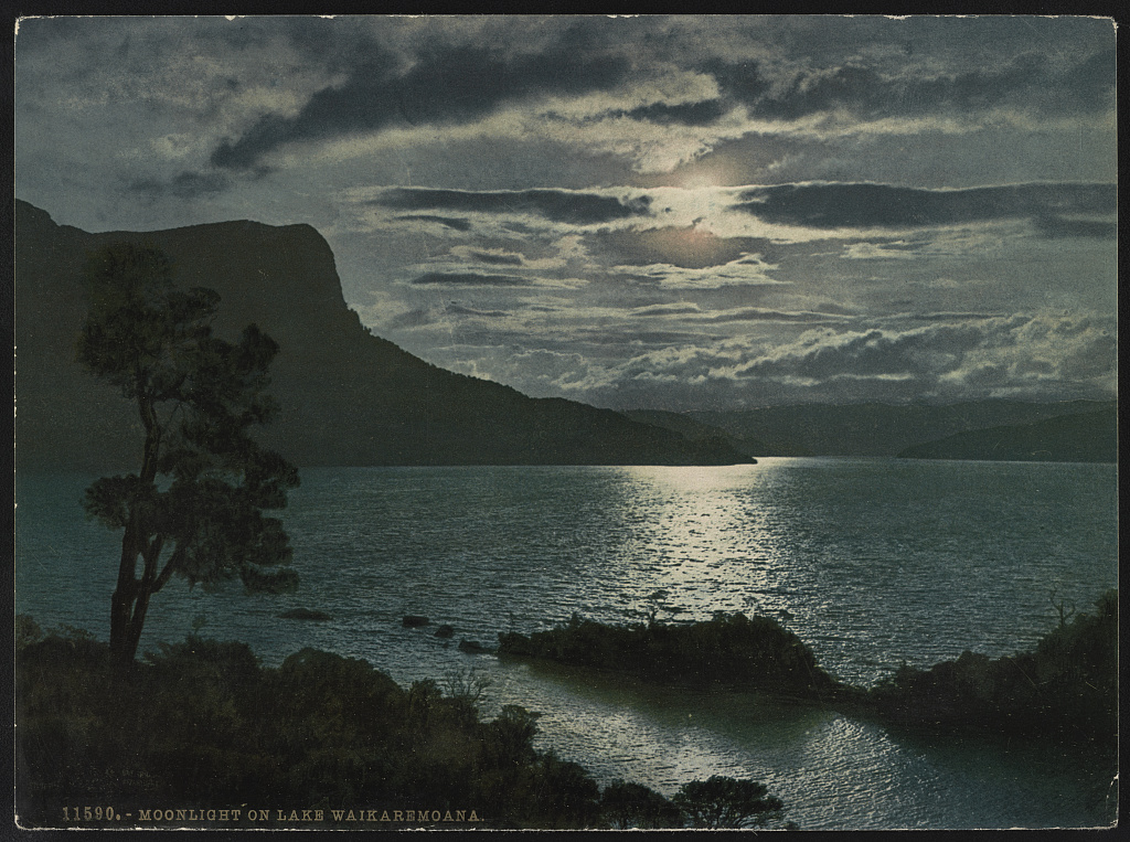 For inspiration, have a look at this beautiful photochrom print from New Zealand in 1890, Moonlight on Lake Waikaremoana.