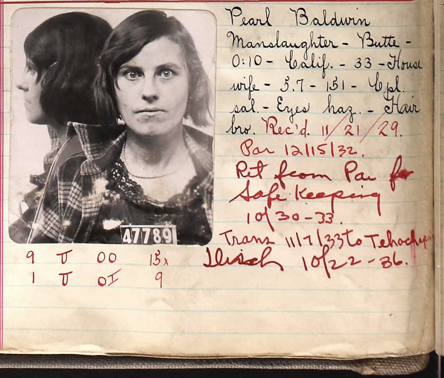 Pearl’s San Quentin mugshot notes she was paroled just three years later in mid-December 1932, but returned “for safe-keeping” on Oct 30, 1933. I bet there’s another story there! Pearl was discharged on October 22, 1936.