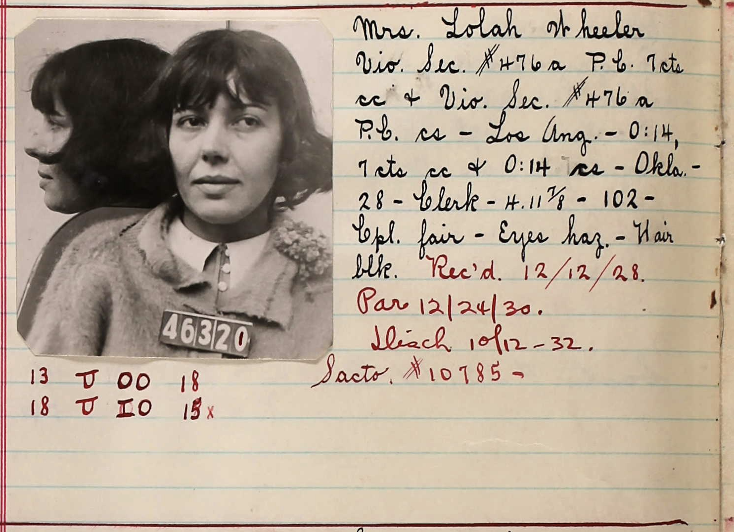 In 1928, a Los Angeles clerk named Mrs. Lolah Wheeler startled the court. The 28-year-old stood convicted of eight counts of issuing checks without sufficient funds, and she would have undoubtedly gotten parole—had she completed the application. But Mrs. Wheeler twice refused to do so.