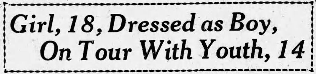 The Oakland Post Enquirer wrote that Lorraine’s debonair youth disguise worked well enough to fool a 14-year-old boy named Leonard Mervin. Lorraine struck up a conversation with him and the two decided “to follow the call of the open road. The pair told a story of having traveled together by automobile and afoot for 11 days, the girl dressed in boy’s attire and the boy innocent of the sex of his young companion.”