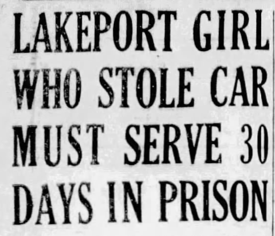 In the end, Lorraine got 30 days in the Alameda jail for “borrowing a stranger’s car.” It isn’t clear which car theft she was being punished for. She had stolen three, by my count. The Santa Rosa Republican added optimistically that “after the sentence is completed, Pauline Walker, woman deputy sheriff, will find the girl a home where she can work her way through business college and got a new start in life.”