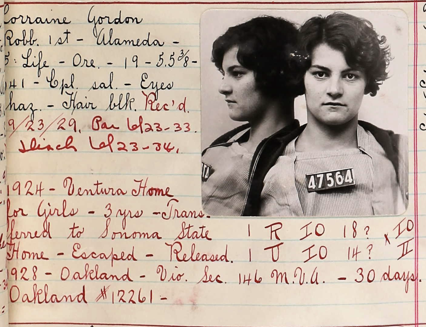 Lorraine was received into San Quentin on September 23, 1929, and paroled on June 23, 1933. She didn’t reoffend while she was on probation—or at least she wasn’t caught!—so her probation ended on June 23, 1934.