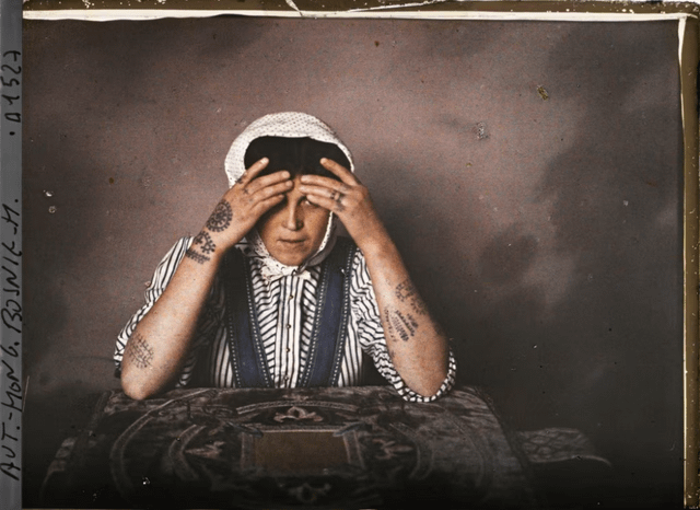 Who do you think she was? Most women did not get tattoos in the 1910s, let alone lots of highly visible tattoos. In the first photo she looks distressed. Any ideas?