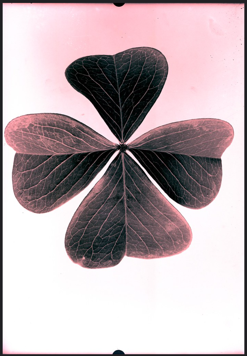 A glass negative creates a different image of an object. This four-leaf clover almost appears to be a living organism, which in some ways it is. I think of the song, “I’m Looking Over A Four Leaf Clover,” a song that originated in the 1920s.