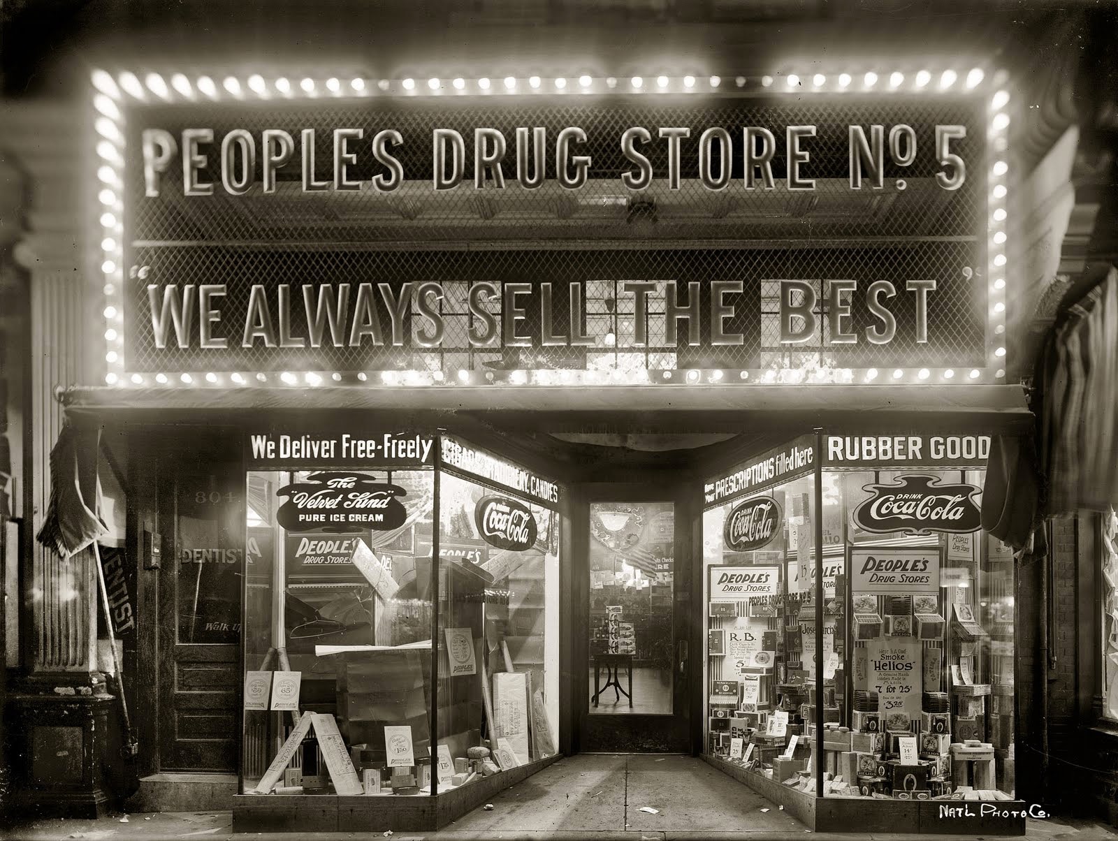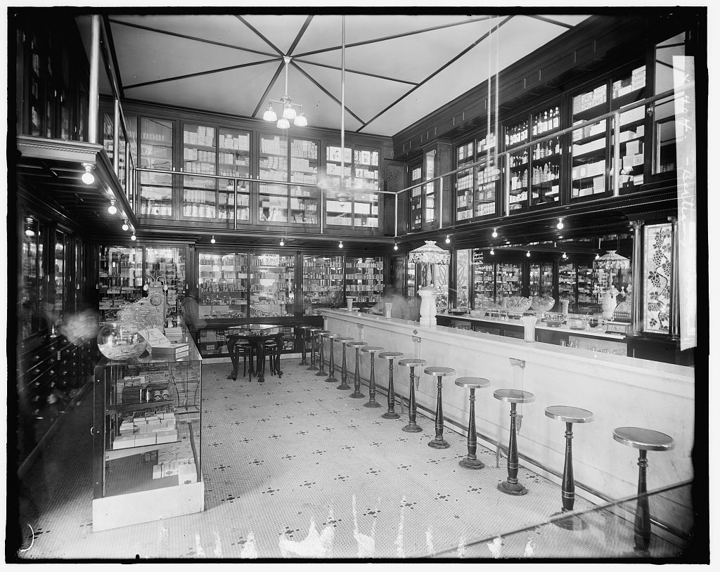 This beautiful picture of Washington DC’s Peoples Drug Store No. 5 was taken between 1915 and 1930.