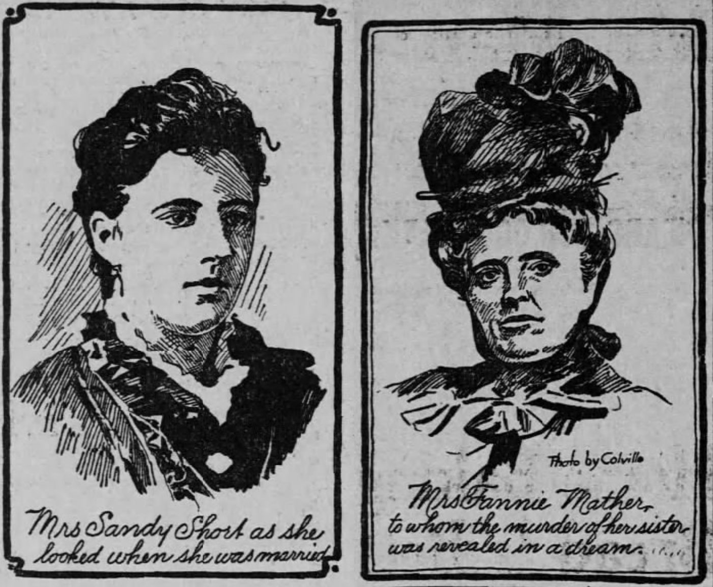 “I have never been a believer in dreams or premonitions,” Mrs. Fannie Mather began, “but just as sure as there is a God in heaven it was He who directed me on this mission which has brought the murderers of my sister to the prison doors.”