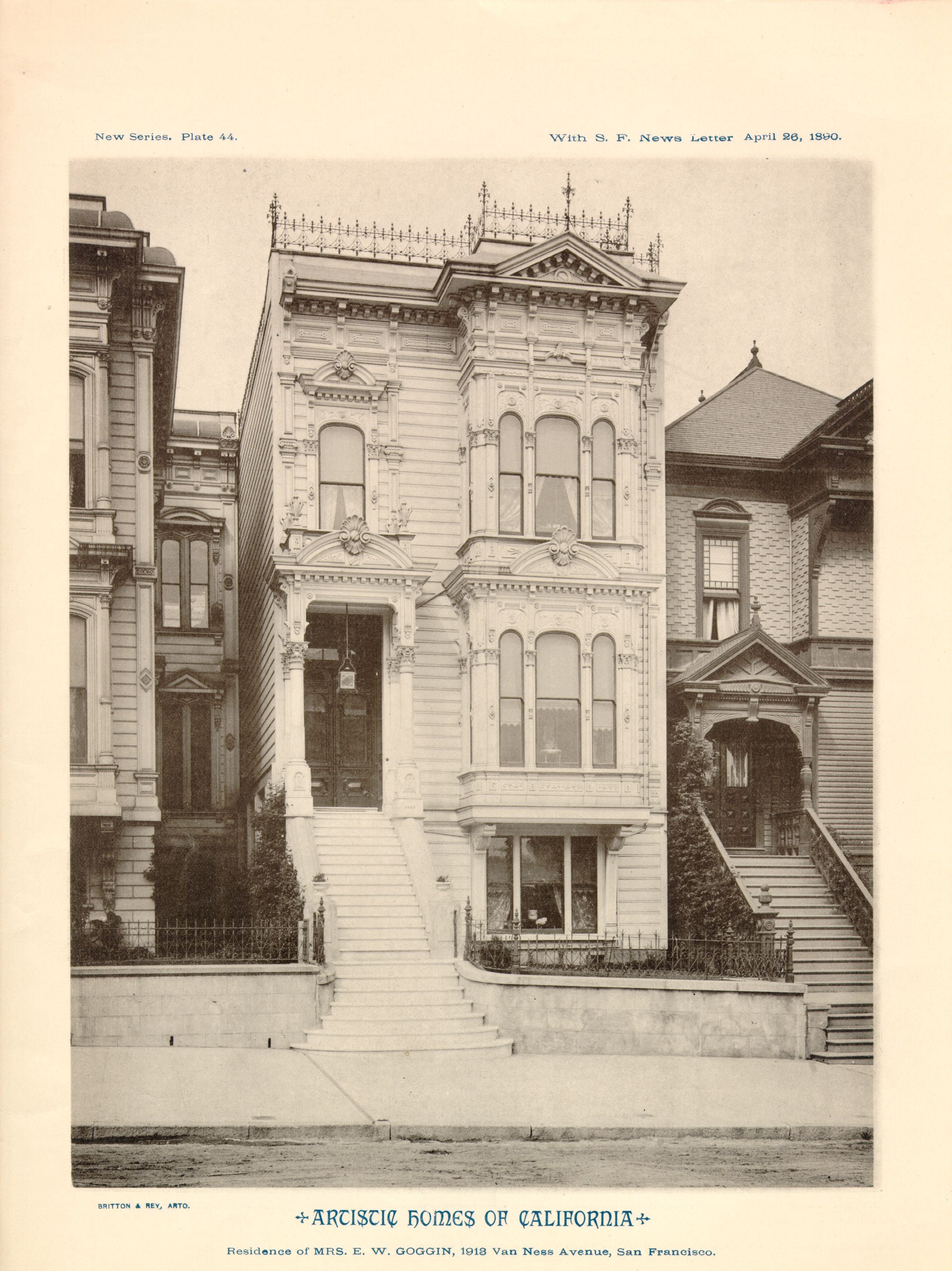 I was in the city last weekend and there are still so many beautiful old homes in San Francisco! The residence of Mrs. E. W. Goggin at 1913 Van Ness Avenue, however, is no more. Here’s a look at how it appeared in 1890.