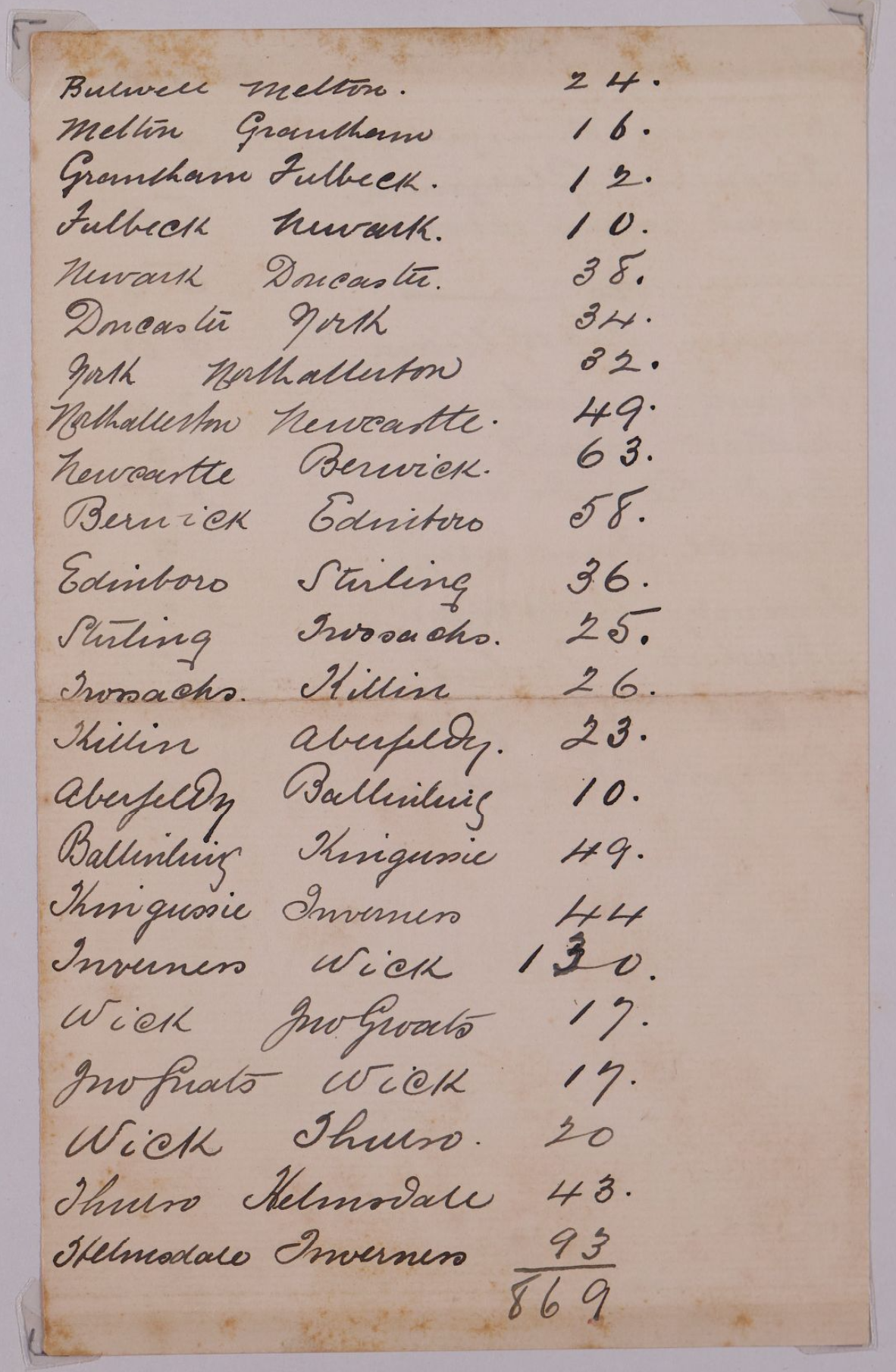 In the same location, I found pictures from a Grand Motoring Tour of Scotland in 1912. The pictures are attributed to J.W.S. and a handwritten list of the places they visited and the distances is included:
