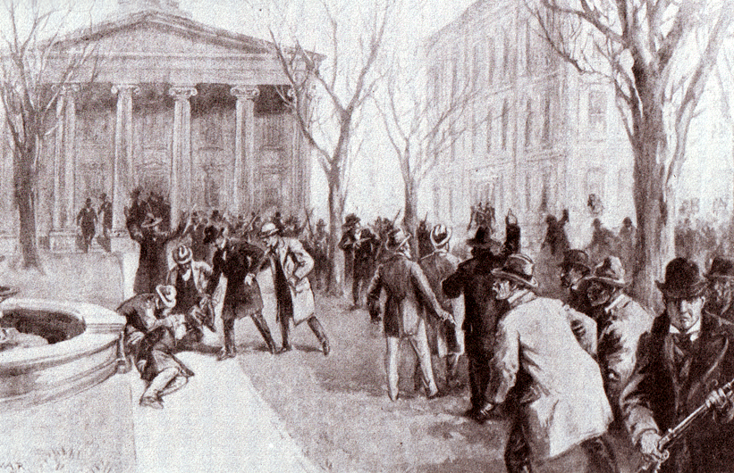 The campaigns were so contentious that Governor William O’Connell Bradley, before the inauguration, asked President McKinley to dispatch federal troops to the State to maintain order. McKinley refused the request. Instead, Republican supporters from eastern Kentucky travelled to Frankfurt, the Capital, armed to “stop the steal.”