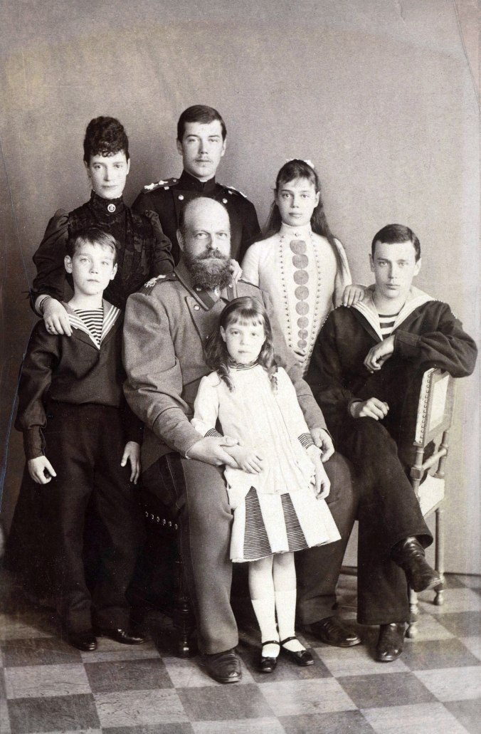 Tsar Alexander III. His son Nicholas is standing directly behind him