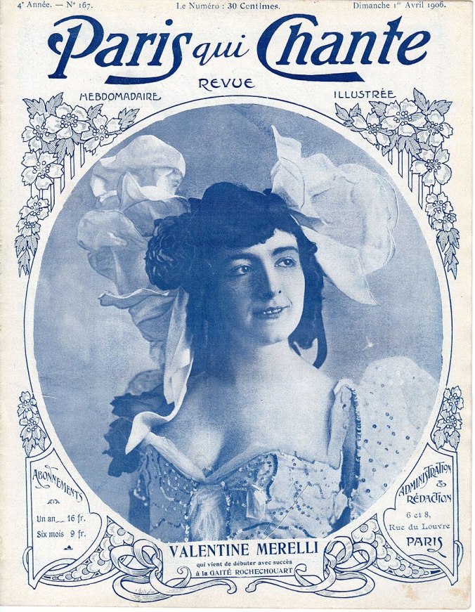 Enter Valentine Darbour. She was a young woman who had grown up in the country, married, and then decided she didn’t really like being married. So she gave her husband the slip and set up shop in Paris, as a singer named Valentine Merelli. This presented two problems. The first was that Valentine couldn’t sing. Secondly, life in Paris is not free. What Valentine lacked in singing talent, she more than made up for in confidence. She only needed a benefactor, and when she met the baron, she knew she had found him.